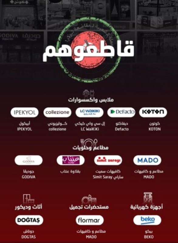 وامتدت الحملة إلى بلدان عربية أخرى أعلنت هي الأخرى حرباً على المنتجات التركية في أسواقها. وأثارت الحملات الشعبية لمقاطعة المنتجات التركية قلقاً واسعاً في أوساط النخب السياسية التركية تتحدث عن أثر هذه المقاطعة على الاقتصاد الذي يعاني من أزمات.