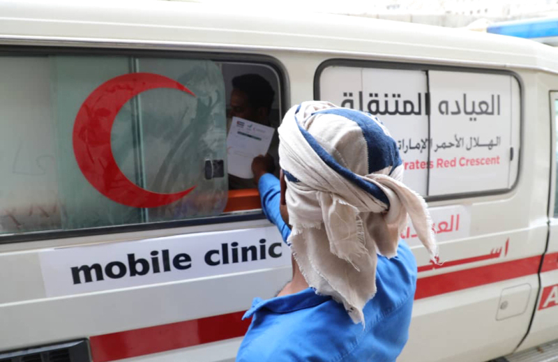 وفي إطار الأعمال الإنسانية التي تقوم بها دولة الإمارات العربية المتحدة وتلبية لنداء النازحين، سيرت هيئة الهلال الأحمر الإماراتي عيادة طبية متنقلة إلى مخيم السد في منطقة البادي شرق مديرية الخوخة بمحافظة الحديدة.