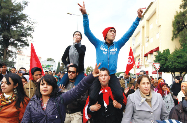 وحركة النهضة الإسلامية الحاكمة في تونس اتهمت، مثل جماعة الإخوان المسلمين في مصر، بأنها أضعف من أن تقف في وجه المتعصبين. ومع تدهور الحالة الاقتصادية، اندلعت أعمال العنف في كل أنحاء تونس هذه السنة، مع احتجاج الألوف من الناس ضد من هم في السلطة.
