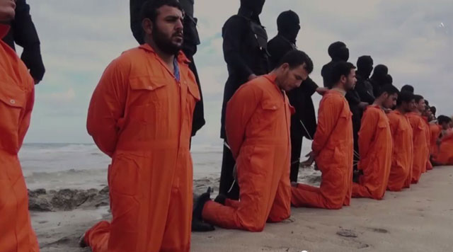 وبث تنظيم داعش في ليبيا، فيديو يظهر نحر 21 مصرياً، مستخدماً أحدث تقنيات الإخراج والتصوير باستخدام أكثر من كاميرا، وتقطيع اللقطات وتقنيات المونتاج.