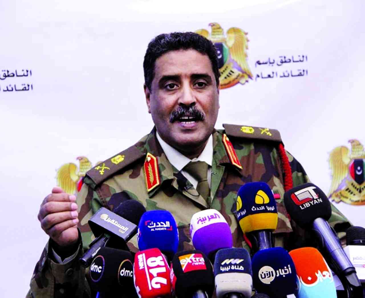 أكد الناطق باسم الجيش الليبي، اللواء أحمد المسماري، في حوار مع «البيان»، أن ليبيا تحولت إلى معركة دولية ضد تركيا، وأن الخطر التركي لا يهدد ليبيا فقط، وإنما الإقليم بشكل كامل، مشيراً إلى أن الأزمة في ليبيا، ليست سياسية، وإنما أمنية، بتفشي الإرهاب والفوضى، مؤكداً أن الرئيس التركي يعمل بالوكالة لصالح مشروع يستهدف الأمن العربي، فيما أشار إلى أن الجيش يقود معركة وطن، وأنه لن يتنازل عن الثوابت الوطنية، ولن يدخل أي حوار، ما لم يتم إخراج تركيا من ليبيا، مشيراً إلى أن الحل السياسي ضروري، لكن يستلزم أيضاً عدم منع الجيش من دحر الإرهاب، بينما أكد أن مدينة سرت في أمان، وأن الجيش سيصد أي محاولة تقدم لميليشيات حكومة الوفاق نحو سرت والجفرة، ومنطقة الهلال النفطي. كما كشف عن صراعات دموية كبيرة بين الميليشيات، حيث تسعى ميليشيات مصراتة إلى حل ميليشيات طرابلس والزنتان، وإلى نص الحوار: