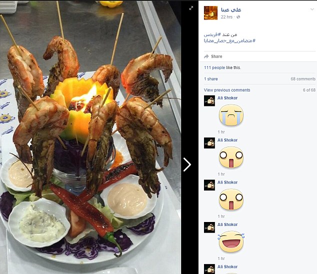 وعلى موقع "فيسبوك" ، نشر أحدهم صورة لمائدة ممتلئة بالطعام في المطبخ ليعلق عليها: "مباشرة من منزلي ، يوجد على الطاولة سمك مقلي ، وتبولة ، وبيبسي.. واستحدم وسمي " #متضامن_مع _مضايا" و #مضايا