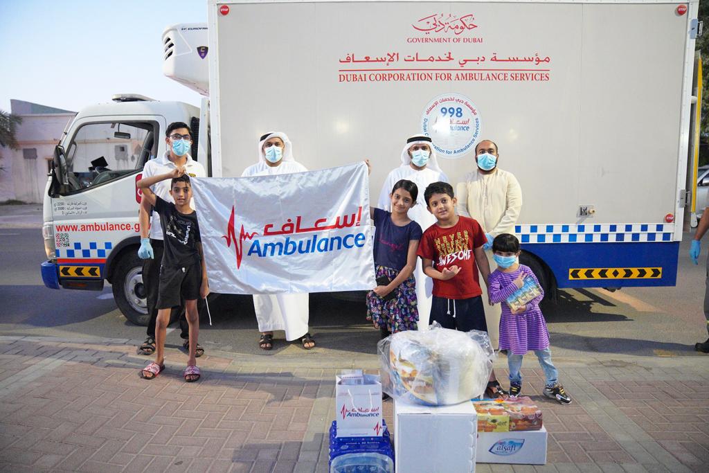 وزَّعت مؤسسة دبي لخدمات الإسعاف المير الرمضاني وألعاب الأطفال على عائلات الميدانيين من مسعفي ومشغلي مركبات الإسعاف وفنيي الطب الطارئ، وأوصلتها إلى بيوتهم في جميع إمارات الدولة.