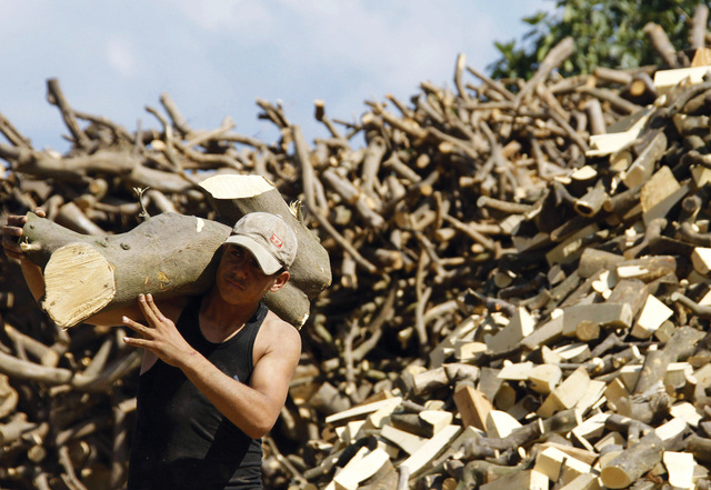 شقاء (رويترز)عامل سوري ينقل الأخشاب على كتفه لتوفير لقمة العيش لعائلته التي تقطن في بلدة الزهراني جنوب لبنان