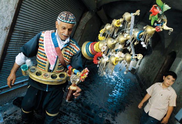 لم تمنع الأوضاع الأمنية المتوترة في مدينة أريحا بريف إدلب السورية بائع عرق السوس من البحث عن رزقه في شوارع شبه خالية، حيث هجرها معظم السكان نتيجة القصف الذي تعرضت له المنازل. ويبدو أن حرارة الصيف لم تترك خياراً للطفل المجاور له أن يطلب كأساً يبرد بها معدته، وسط سخونة القذائف وسوء الحالة المعيشية للناس.