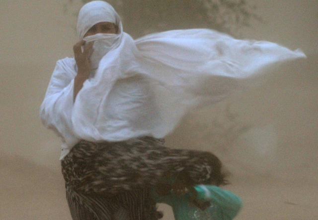 عاصفة أ.ف.بامرأة وطفلتها تسيران وسط عاصفة ترابية ضربت العاصمة الباكستانية إسلام آباد وأدت إلى تدني الرؤية ونقل حالات اختناق إلى المستشفيات.
