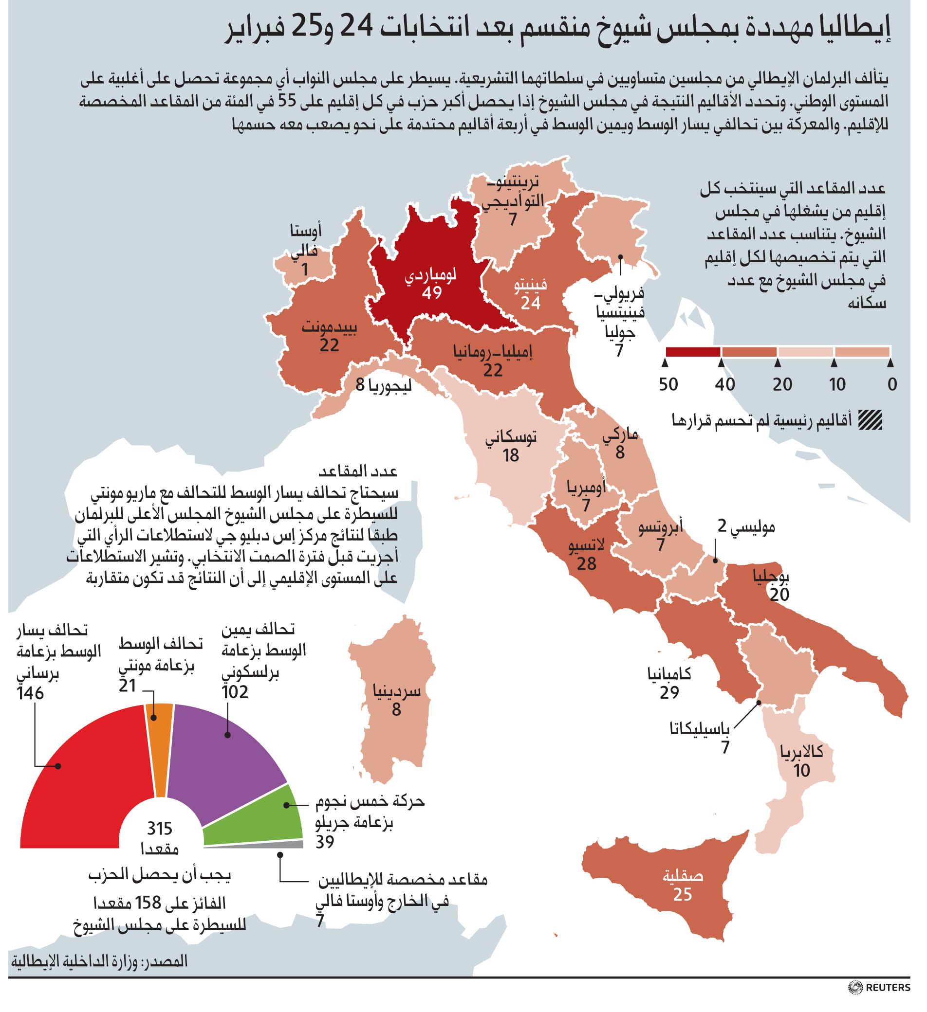 ايطاليا مهددة بمجلس شيوخ منقسم بعد انتخابات 24و25فبراير
