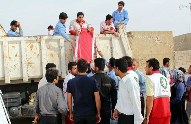 وعرض التلفزيون الإيراني لقطات أمس، تظهر نقل جرحى إلى مستشفى محلي لتلقي العلاج. كما أظهرت اللقطات مواطنين إيرانيين وهم يزيلون أنقاض منازل متهدمة. والكثير من المنازل في مناطق ريفية في بوشهر مصنوعة من الطوب اللبن، المعروف أنه ينهار بسهولة في إيران، التي يكثر بها وقوع الزلازل.