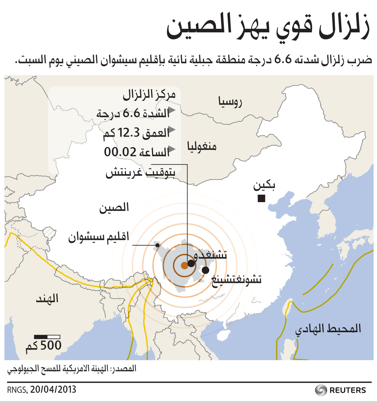 وذكرت هيئة المسح الجيولوجي الأميركية أن الزلزال وقع صباح أمس في مقاطعة لوشان، وأن مركزه كان على عمق 12 كيلومتراً. وشعر سكان في الأقاليم المجاورة ومدينة تشنغدو عاصمة إقليم سيشوان بقوة الزلزال، ما دفع كثيرين منهم للخروج من المباني، وذلك حسب روايات وردت على موقع سينا ويبو للتواصل الاجتماعي الذي يشبه تويتر.