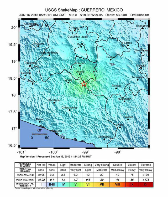 وذكر معهد المسح الجيولوجي الأميركي، أن هزة أرضية بقوة 5.8 درجات ضربت صباح اليوم الأحد، جنوب غرب المكسيك، وكان مركزها على بعد 22 كيلومتراً من منطقة جولالبان ، وشعر بها سكان العاصمة مكسيكو.
