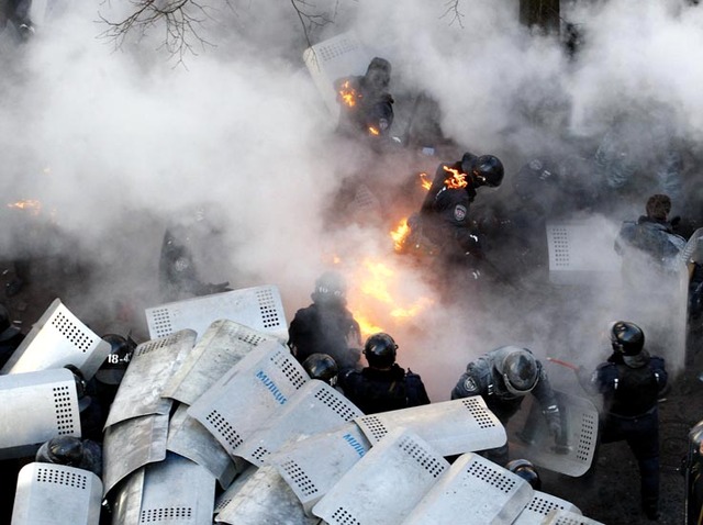 تصاعدت أمس أعمال العنف لتشعل العاصمة الأوكرانية كييف، غداة يوم دامٍ قتل فيه 26 شخصاً وأصيب أكثر من ألف آخرين، وسط استنفار سياسي أوروبي وتهديد بفرض عقوبات، قابله الرئيس فيكتور يانوكوفيتش بتصعيد استخدام القوة وملاحقة قادة المعارضة، كما أقال رئيس أركان الجيش الجنرال فولوديمير زامانا.