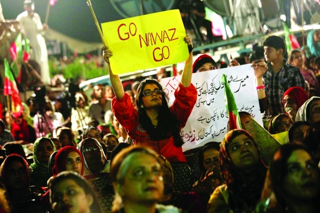 وأعلن رئيس حزب «حركة الانصاف» عمران خان من منصة على مقطورته أنه لن يتراجع عن مطالبه، واقترح استقالة شريف لمدة شهر واحد على الأقل للتمهيد إلى تشكيل لجنة انتخابية محايدة للتحقيق في تزوير الانتخابات التي أوصلت شريف إلى تولي السلطة، وفي حال التأكد من حدوث تزوير يجب إقالة الحكومة وحل البرلمان وإجراء انتخابات جديدة.