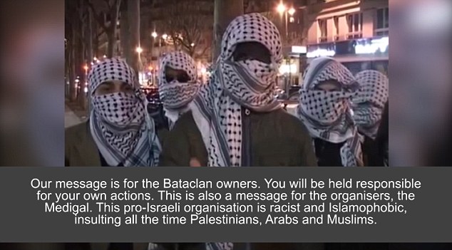 تداولت مواقع التواصل الاجتماعي والصحف العالمية أمس فيديو جديد صور عام 2008، تظهر فيه جماعة فرنسية ملثمة بالكوفية الفلسطينية وهي تهدد موظفي قاعة الحفلات باتاكلان التي شهدت مؤخرا هجمات مروعة على يد انتحاريين أسفرت عن مقتل 89 شخصاً.