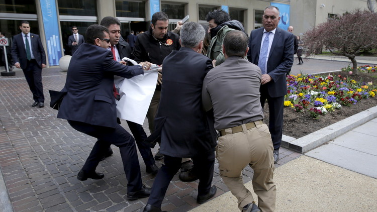 وأدت المشاجرة، التي وقعت خارج مقر السفير التركي خلال زيارة أردوغان للولايات المتحدة في مايو، إلى توتر العلاقات الأمريكية التركية.