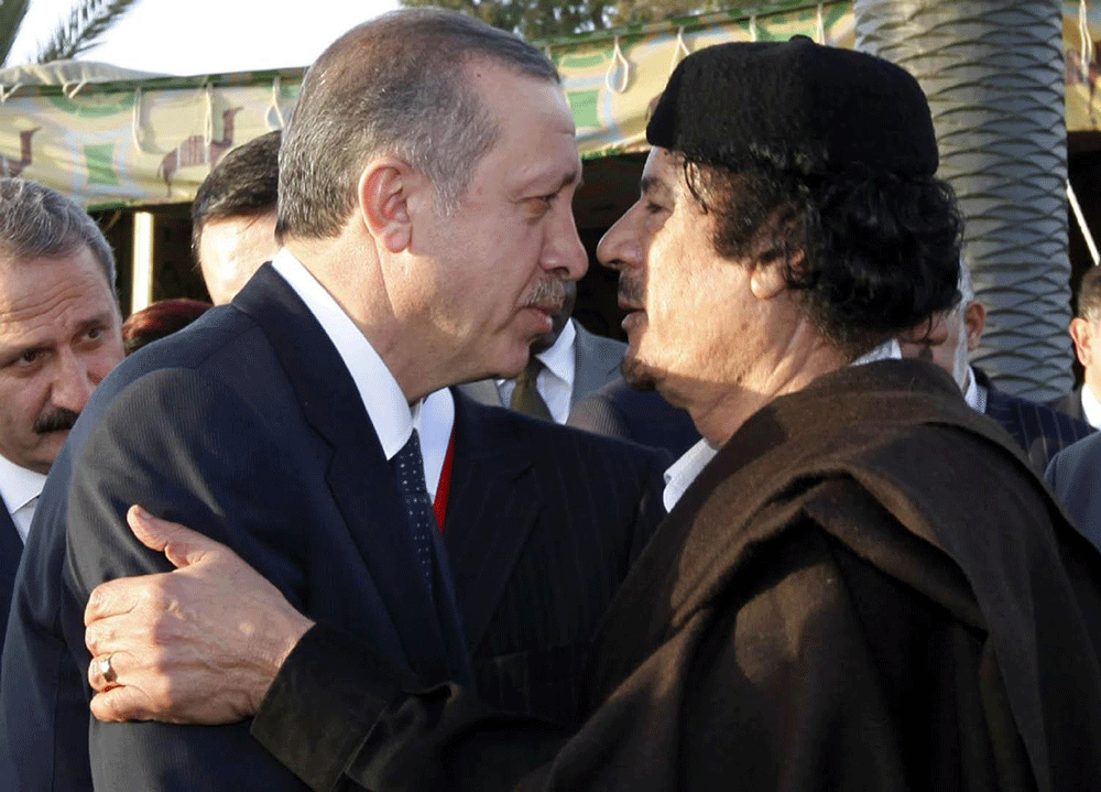 اختراق الرئيس التركي رجب طيب أردوغان لليبيا كان سابقاً لما سمي بثورات الربيع العربي في العام 2011، وإسلاميو تركيا عموما ارتبطوا بعلاقة جيدة بنظام العقيد معمر القذافي، الذي كان لا يخفي آنذاك موقفه الرافض لدور أنقرة في الحلف الأطلسي وعلاقاتها الاستراتيجية مع إسرائيل وكذلك قمعها الأكراد، ولذلك سعى من خلال جمعية الدعوة الإسلامية إلى تقديم العون إلى التيارات الإسلاموية في تركيا عساها تصل إلى الحكم وتغير سياسات بلادها، كما كان من داعمي نجم الدين أربكان زعيم حزب الرفاه ورئيس وزراء تركيا من الفترة بين 1996 و1997 والذي زار ليبيا في أوج أزمة لوكربي في أكتوبر 1996 وتم استقبال رجب طيب أردوغان وهو عمدة لإسطنبول خلال التسعينيات في مكاتب أجهزة المخابرات الليبية حين كان على رأسها موسى كوسا، الرجل الغامض الذي يقيم حاليا في قطر. وما إن وصل أردوغان إلى رئاسة الحكومة في 2003 حتى فتح أمامه القذافي أبواب ليبيا على مصارعها.