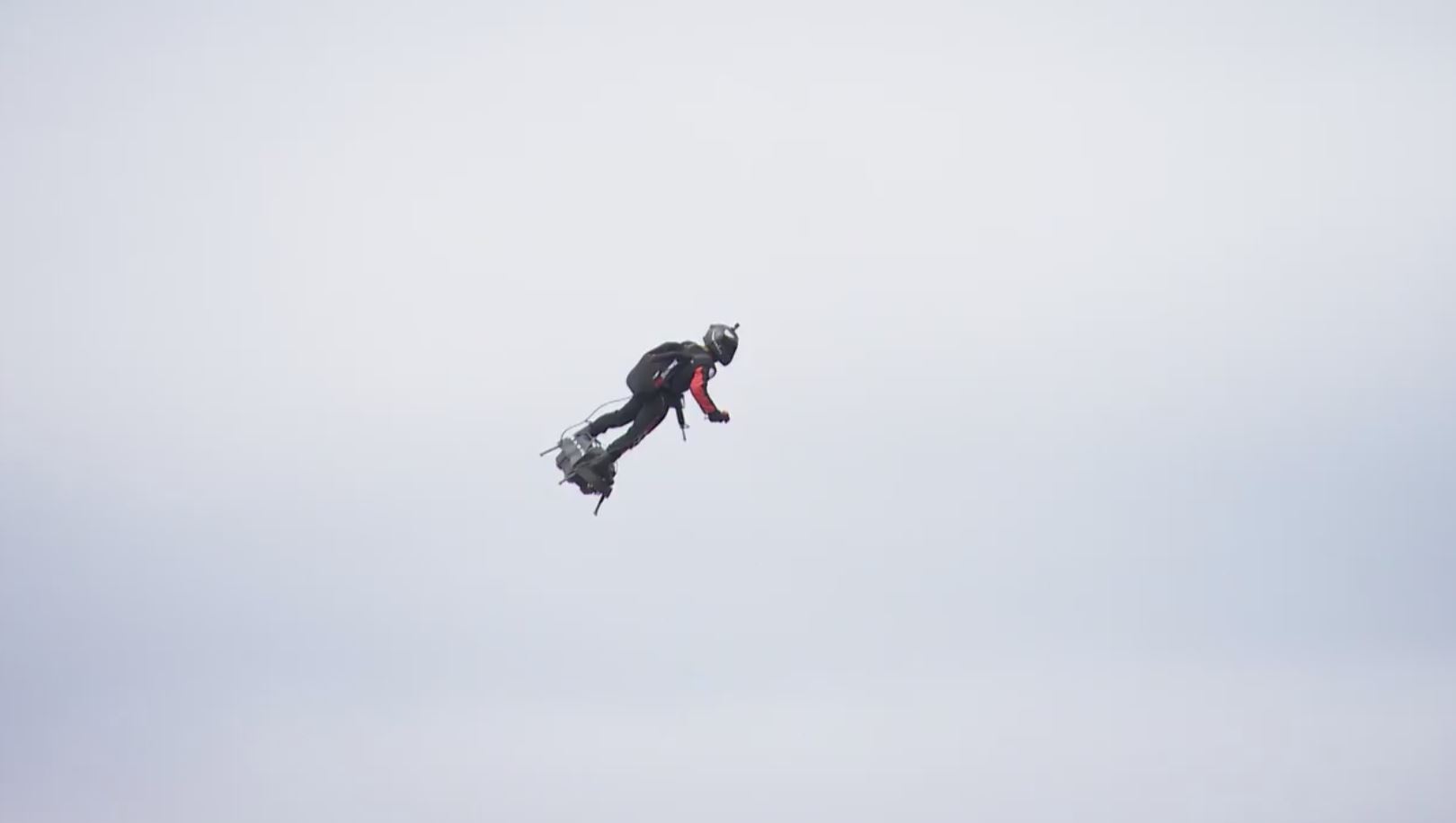 يشار إلى أن العرض المفاجئ هو عمل لبطل سباق التزلج على الجليد الفرنسي السابق فرانكي زاباتا، الذي تحول الآن إلى الابتكار وكان يعرض اختراعه "فلاي بورد إير".