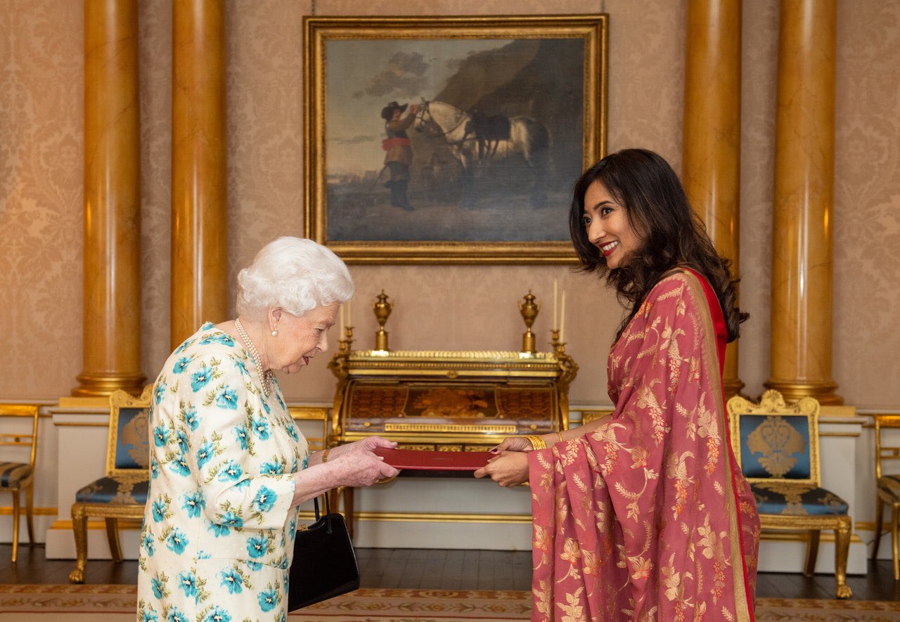 في الغرفة 1844 من مقر إقامتها الملكي بقصر باكينغهام، استقبلت الملكة إليزابيث المبعوثة العليا لسريلانكا ساروجا سيريسينا وزوجها الدكتور سوداث تالباهيوا بلا قفازات.