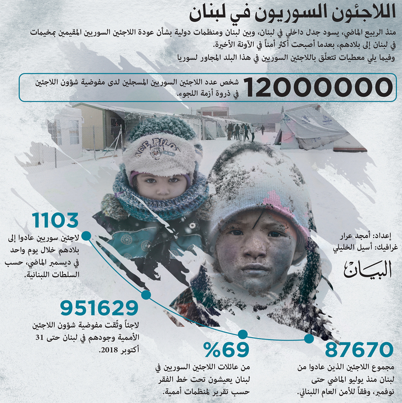 وعلى الرغم من أن الحكومة اللبنانية لم تتوصل إلى إجماع في ما يتعلق بالنزاع السوري وأزمة اللاجئين، إلا أن وزارة الخارجية اللبنانية تواصل الضغط على المفوضية. في مايو 2015، أمرت الحكومة المفوضية بوقف تسجيل اللاجئين السوريين. وفي يونيو 2018، جمد وزير خارجية تصريف الأعمال جبران باسيل تجديد تصاريح الإقامة لموظفي المفوضية لأجل غير مسمى. وأشار بيان صادر عن الخارجية إلى «تكتيكات تخويف» من جانب المفوضية، زاعماً أنها تهدف إلى إخافة اللاجئين السوريين من العودة إلى سوريا، وذلك بإبلاغهم بشأن خطر التجنيد العسكري والوضع الأمني الهش.