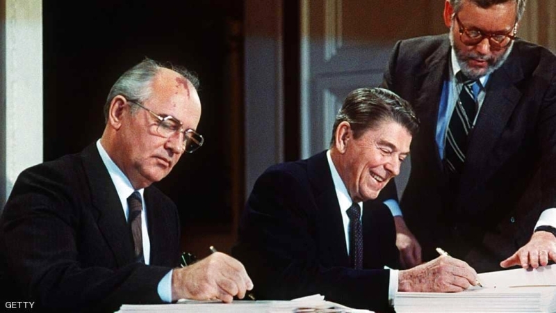 معاهدة القوى النووية المتوسطة (أي إن إف) التي أعلنت واشنطن وبالتالي موسكو عن الانسحاب منها، وقّعها عام 1987، كل من الرئيس الأمريكي الأسبق رونالد ريغان والزعيم السوفييتي الأسبق ميخائيل غورباتشوف، وفيها تعهّدا بعدم صنع أو تجريب أو نشر أي صواريخ باليستية أو مجنحة أو متوسطة، وتدمير منظومات الصواريخ، التي يتراوح مداها المتوسط ما بين 1000-5500 كيلومتر، ومداها القصير ما بين 500 - 1000 كيلومتر.