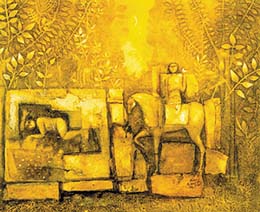 وهول الكوارث التي ينوء العراق تحت ثقلها وقد تحولت إلى إيقاع يومي للموت الذي يتجول بحرية في الحارات القديمة وفي القرى التي رسمتها والأساطير التي تربت عليها، وفي السرقات والنهب لموروث العراق الإبداعي والأعمال الفنية والآثار التي نهبت من المتاحف والمنازل.