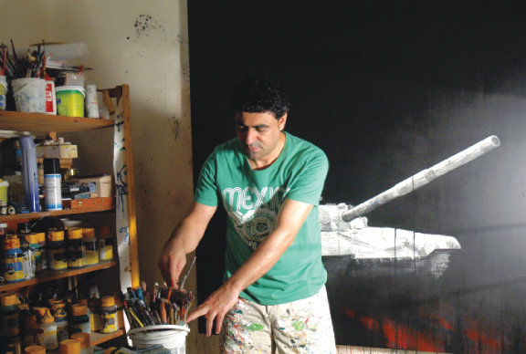 صورة نتلقفها عبر وسائل مختلفة، معظمها مأخوذ بواسطة أشخاص غير محترفين، وهنا تكمن أهميتها، حيث لا تظهر إلا المعاني الهائلة والرمزية المكثفة فقط، فهي بليغة وآسرة وملهمة، وحضور آلات الموت فيها، كبير وجبار وعدواني كاسح وصلف، فهي تلغي الحياة وتجلب الموت والدمار، وهذا سبب من أسباب حضورها في لوحتي الجديدة في معادلة العتمة والظلام: