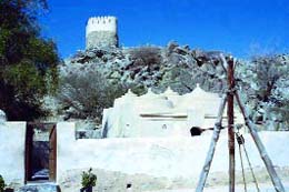 وتاريخ القرية التي يقع فيها من حيث الأحداث التي مرت بها هذه المنطقة في محاولة لتثبيت تاريخ محدد لبناء هذا الأثر الفريد الذي يقع في الزاوية الشمالية من دولة الإمارات العربية المتحدة).لقد قدم ناصر حسين العبودي دراسة اركيولوجية حول هذا المسجد والقرية التي يقع فيها المسجد والمناطق المجاورة، إضافة إلى دراسة تفصيلية عن الأثر نفسه، مؤكداً على عناصر مختلفة مثل المعمار، الزخرفة، أسلوب بنائه، تفرده في نموذج معماري غير معروف في المساجد الأخرى. وقد استغرق البحث سنوات طويلة .