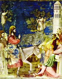 ونعود إلى جيوتو وعلمه المبدع الذي جعل من عالم القديس فرانشيسكو دي اسيسي، عالماً يعيشه كل الناس، ليس عالماً لقلاع مزخرفة بالذهب والاحجار الكريمة كما هي الحال في الفن البيزنطي أو الفن الرومانتيكي المبكر، بل ان عوالمه المقدسة هي عوالم دنيوية، فالمسيح عند ابن الإنسان بعيد عن الجمود.