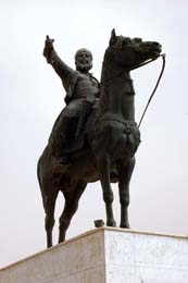 وفي تفاصيل مميزات التمثال، صنع «كوردييه» لوحتين لوضعهما على قاعدة التمثال الرخامية، إحداهما تمثل انتصار الجيش المصري على الأتراك في معركة «نزيب»، والثانية انتصاره عليهم في معركة «قونية»، وكانت اللوحتان على وشك أن توضعا إلى جانب قاعدة التمثال، لكن السلطات التركية تدخلت ورفضتهما لأنهما تجسدان هزيمتها أمام جيوش مصر، لكن