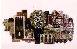 وتعبيرياً، وفي أحايين كثيرة، يقصره على لونين ومشتقاتهما (بني وأخضر، أزرق وأحمر، أزرق وأخضر) مع التأكيد على تداخلهما عبر النصوص والكلمات والزخارف التي تأتي كثيفة وحاشدة أحياناً، وقليلة مدروسة، أحياناً أخرى.