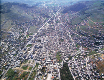 وهي في وادٍ قد ضغطها جبلان، سوقها من الباب إلى الباب وآخر إلى نصف البلد، والجامع وسطها، مبلطة نظيفة لها نهر جارٍ، بناؤهم حجارة». في حين أن ابن بطوطة قد زارها في العام 1325 ميلادية، وقد وصفها بأنها «مدينة عظيمة كثيرة الأشجار والماء ومن أكثر بلاد الشام زيتوناً، وبها مسجد جامع متقن وحسن في وسطه بركة ماء عذب».