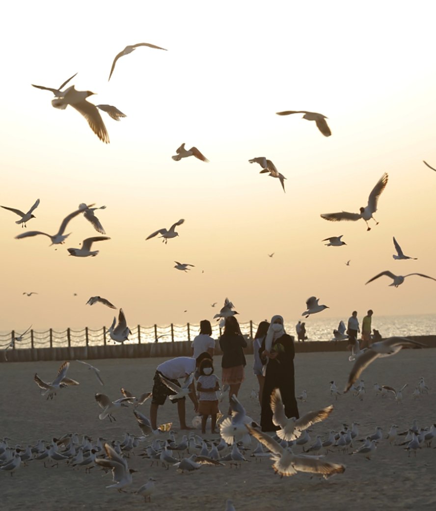وجهة فريدة تصوير: زافيير ويلسون«كايت بيتش» من أشهر وأفضل الشواطئ المفتوحة في دبي، حيث يمكن الاسترخاء وتناول أشهى الأطباق، وممارسة الرياضات المائية. وفي الصورة أشخاص يستمتعون بإطعام الطيور على الشاطئ.