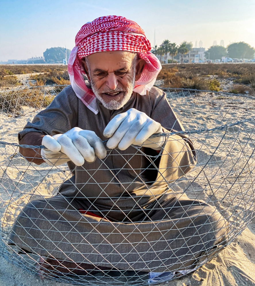 مهنة عريقة تصوير: أحمد عبيدسالم جمعة الروم، يمارس مهنة صناعة القرقور لصيد السمك على شاطئ جميرا منذ 50 عاماً. وهذه واحدة من أقدم الأدوات التي ابتكرها وصنعها الآباء والأجداد، واستخدموها في كسب رزقهم.