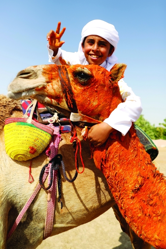 خضاب الزعفران تصوير: سالم خميسفتى إماراتي يحتفي بنصر مطيته في سباق ختامي المرموم للهجن بدبي، وتظهر المطية مخضبة بالزعفران، حيث اعتاد أهل الإمارات تخضيب المطايا التي تحقق الإنجازات في سباقات الهجن التراثية به تعبيراً عن الفرحة والفخر.