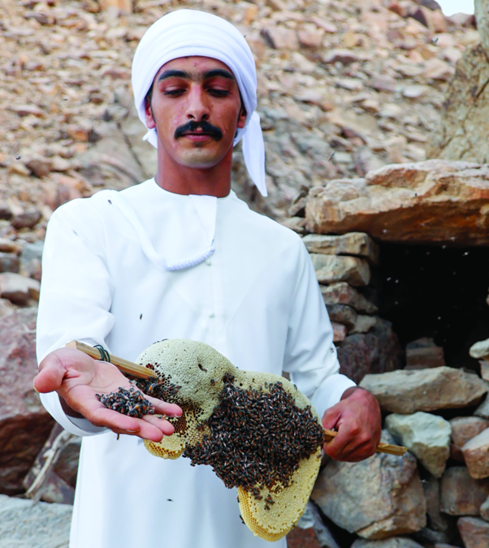 خير الهواية تصوير: زيشان أحمدعبدالله اليماحي، شاب إماراتي يهتم بتربية النحل ويجتهد في إنتاج عسل السمر الصيفي في منطقة الطويين بالفجيرة، وهي هواية أضحت مصدر رزقه، ومثالاً على الارتباط بالأرض وخيراتها.