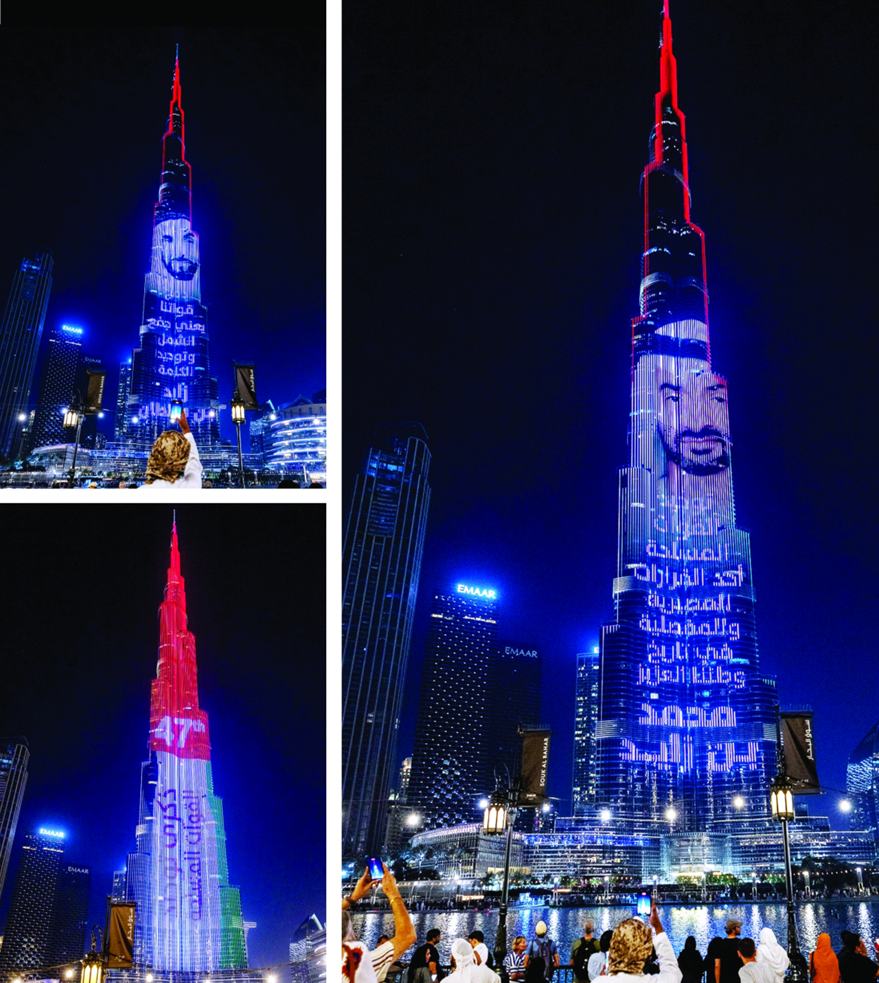 وذلك لتوطيد دعائم الاتحاد وتعزيز مسيرته. وقد رسخ هذا اليوم في عقول وقلوب أبناء الإمارات ذكرى مجيدة، يحتفى بها كل عام. وفي الصورة، عرض ضوئي على «برج خليفة» يحيي الذكرى العزيزة.