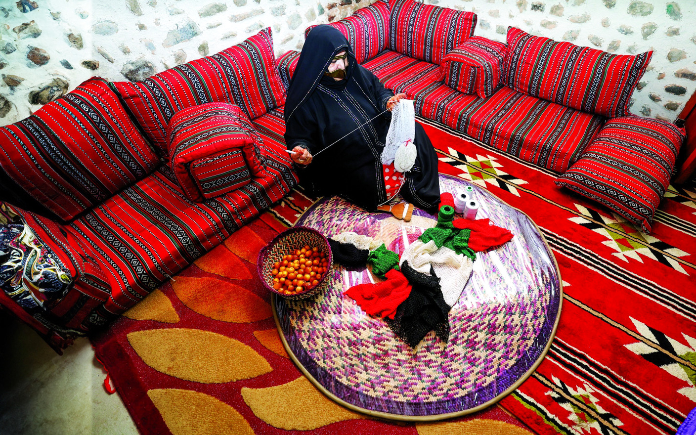 تراث عريق تصوير: زيشان أحمدالوالدة حليمة خميس النقبي من منطقة شاطئ اللؤلؤة في خورفكان تقوم ببعض الأشغال الحرفية، في صورة تجسد الارتباط العميق بين أهل الإمارات وتراثهم العريق.