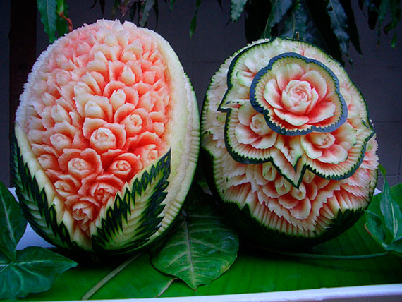 البطيخ في الصين ... شكل آخر يولي الصينيون اهتماما واسعا لفن النحت على الفواكه لاسيما على البطيخ لتقديمه خلال عيد رأس السنة الصينية وغيرها من المناسبات الاحتفالية. اخترنا لكم فيما يلي مجموعة من أجمل الأشكال المنحوتة على فاكهة البطيخ. مشاهدة ممتعة.