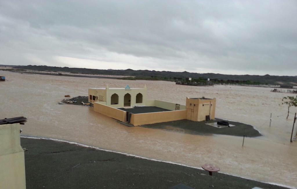 صورة متداولة لمسجد في جزيرة مصيرة العمانية والفيضانات محيطة به ولم تدخله