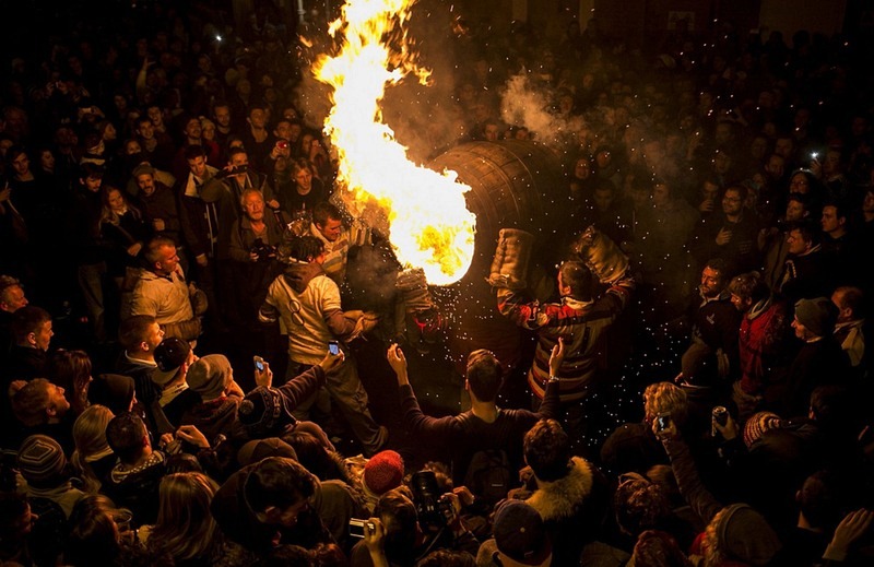 في الخامس من نوفمبر من كل عام، وفي تقليد يعود إلى العصور القديمة، يتسابق أهالي قرية أوتري في سانت ماري، ديفون، غرب انجلترا في الشوارع حاملين براميل ثقيلة مشتعلة.