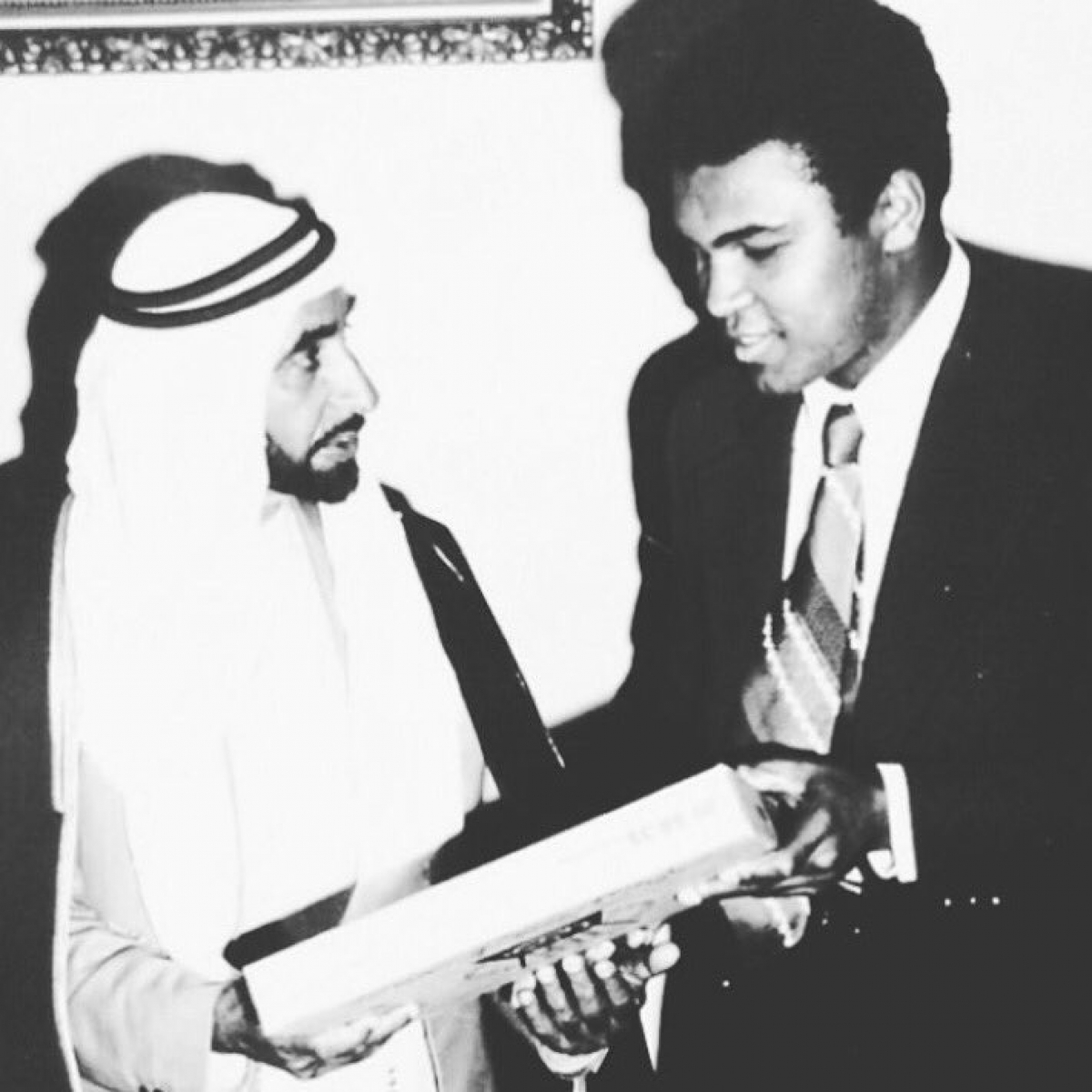 الأسطورة كلاي رفع بساعديه إلى جانب كؤوس النصر راية الإسلام حيث قام بعديد من الاعمال الخيرية والدعوية وعمل جاهداً لتغيير الصورة المغلوطة حول الإسلام الراسخة في أذهان الغرب.