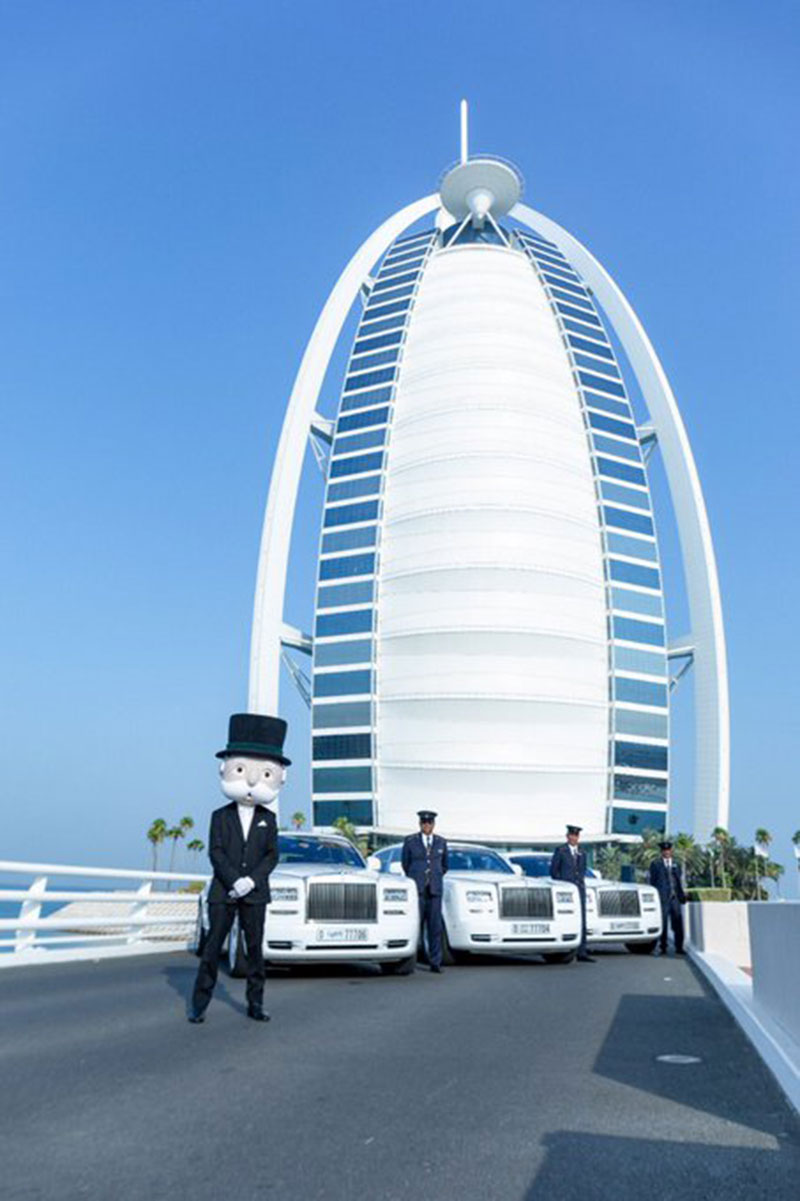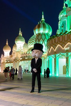 وقبل إطلاق نسخة دبي قام السيد مونوبولي، وهو الشخصية الكرتونية الشهيرة التي تمثل هذه اللعبة منذ عقود طويلة، في جولة لأسابيع زار خلالها أهم المواقع في المدينة.