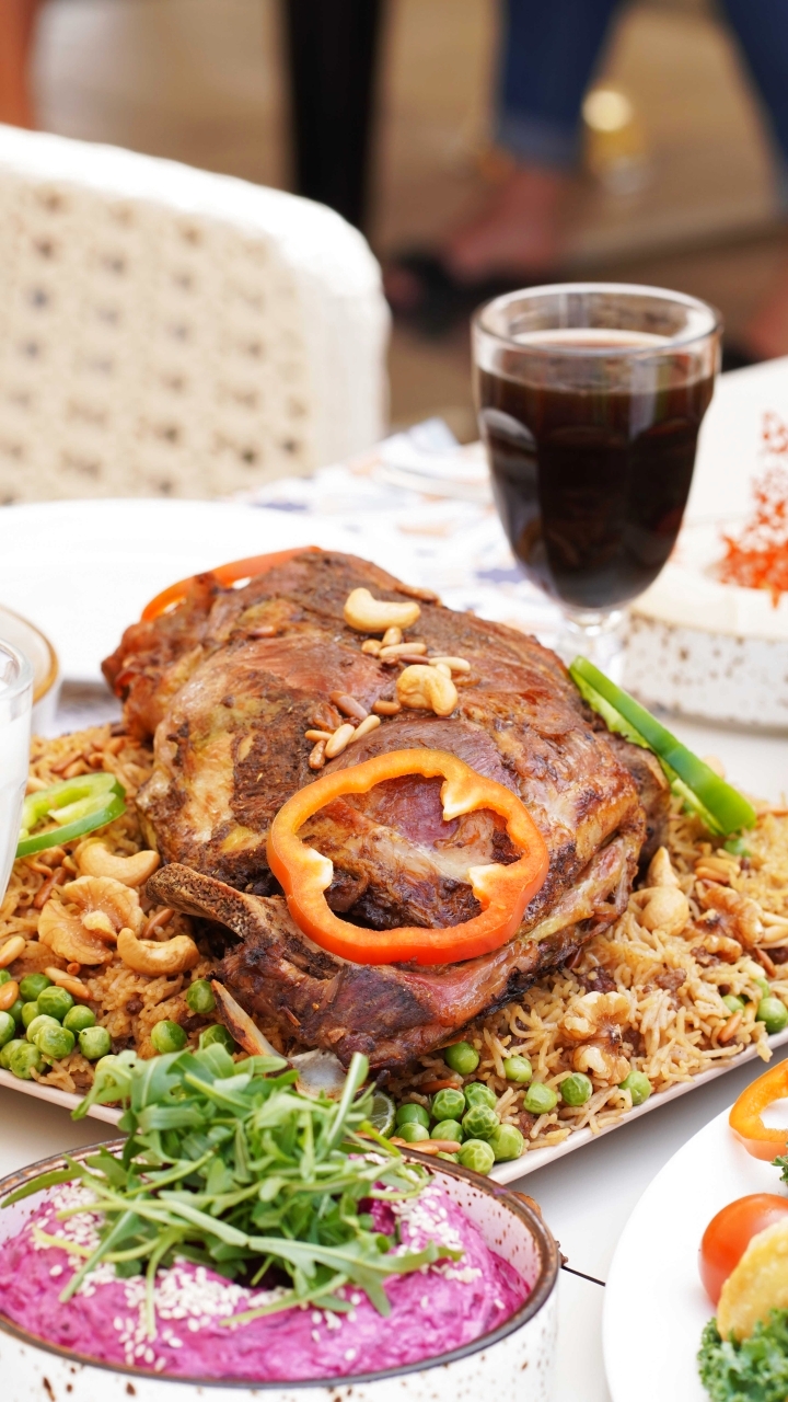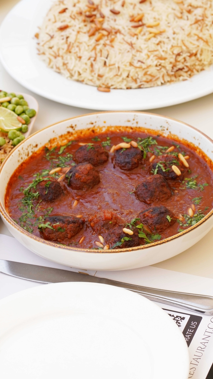 بهارات خاصة وأرز شرقي ولحم مفروم وبازيلاء ومكسرات متنوعة مع نكهة السمن