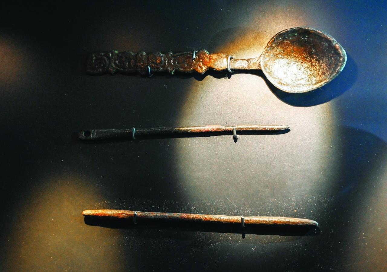 كشفت أعمال التنقيب المختلفة في موقع جميرا عن عدد كبير من القطع الأثرية، ومنها هذه الأجزاء المكسورة المصنوعة من البرونز، ومعها الملعقة البرونزية والمزينة في مقبضها بالورود، وتبدو في حجمها بحجم ملعقة الحلوى بمقاييس اليوم، وليس بحجم ملعقة الطعام أو الشاي الصغيرة، لتبقى الملعقة بعد اكتشافها أقدم ملعقة في دبي.