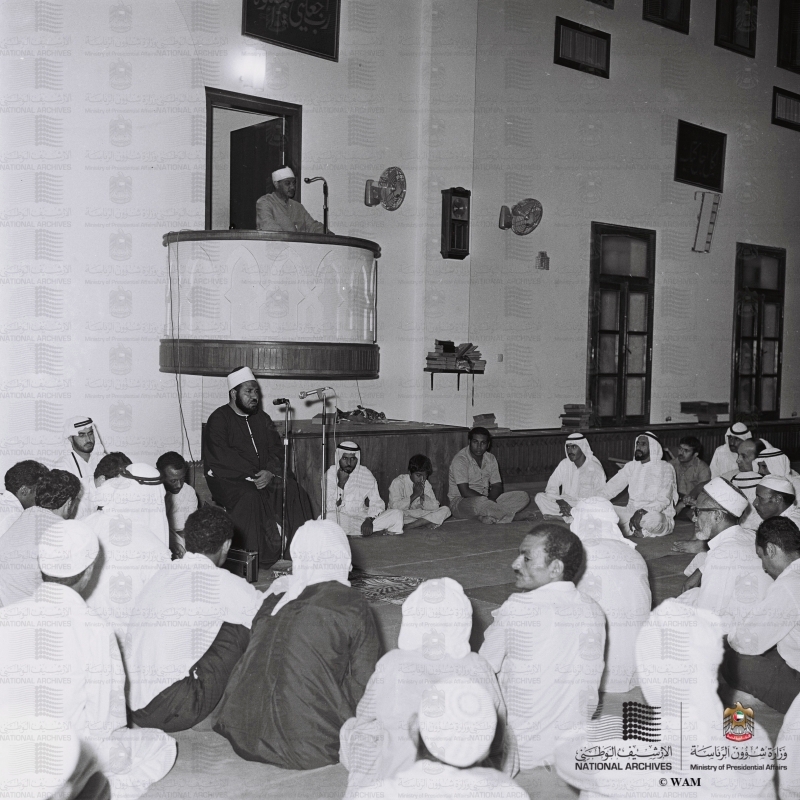 في الصورة، ندوة دينية أقيمت في شهر رمضان المبارك بتاريخ 16 أكتوبر 1973م. | الصورة - الأرشيف الوطني