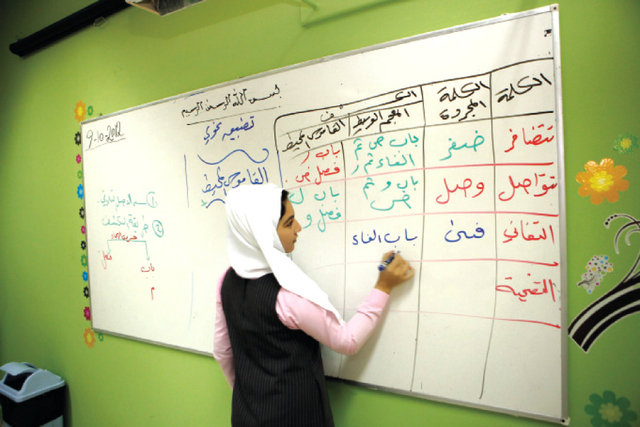 الاهتمام باستخدام السبورة فـي تفسير معاني الكلمات الجديدة وربط الإملاء بالمواد الدراسية الأخرى.