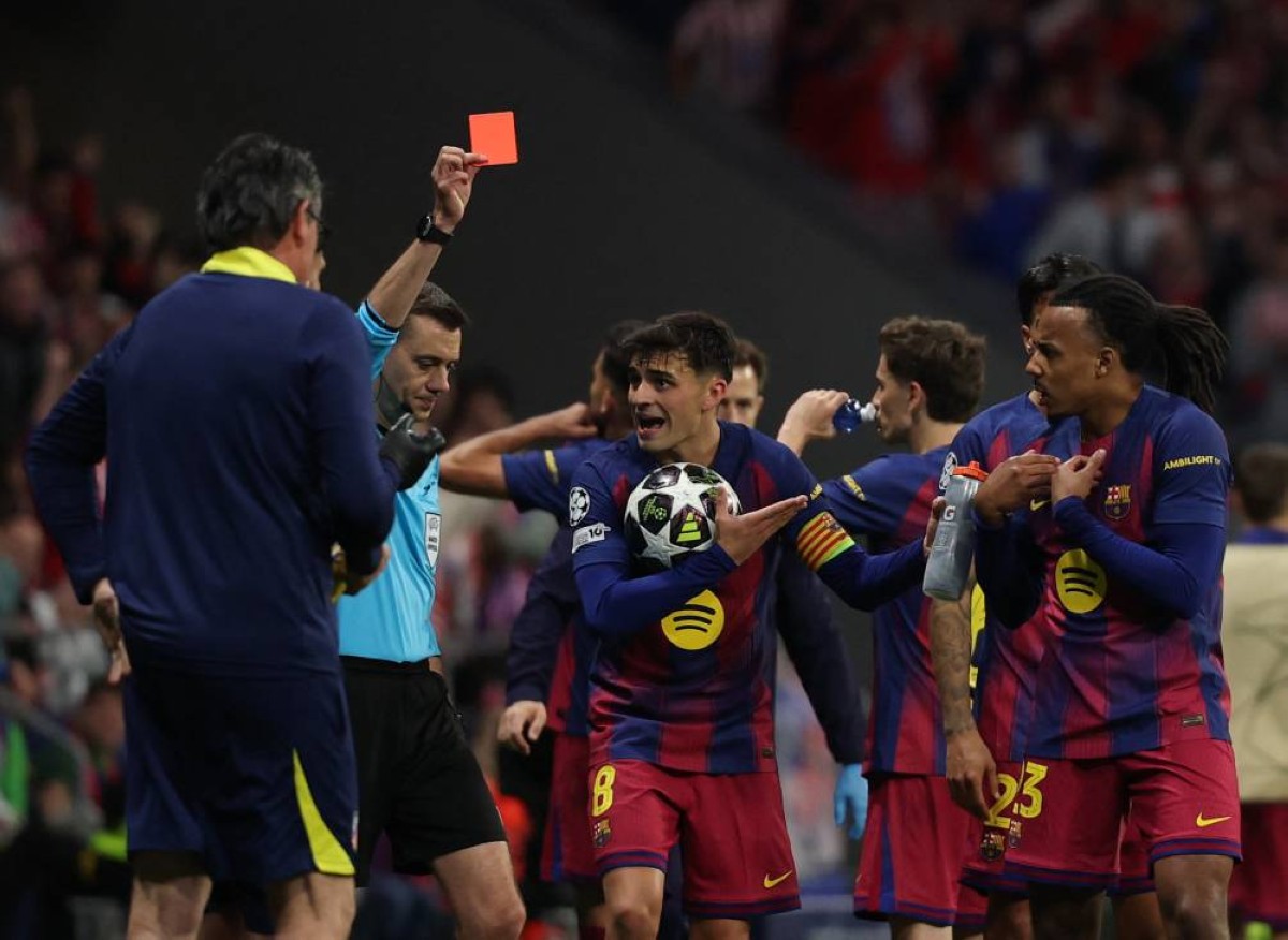وجاءت أحدث فصول هذه السلسلة، مساء الأربعاء، حين أكمل برشلونة مباراته أمام أتلتيكو مدريد بعشرة لاعبين في إياب ربع النهائي دوري الأبطال، بعد طرد مدافعه إيريك غارسيا في الدقيقة 80 بقرار مباشر من الحكم الفرنسي كليمان توربان، إثر تدخل على المهاجم ألكسندر سورلوث.