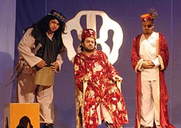 وقدم المشاركون في الحفل عرضاً لمسرحية «الملك مواطن» تأليف الإعلامي نواف يونس عن نصه ملك ليوم واحد ـ ومن إعداد وإخراج عبدالله صالح، كنتاج للتدريبات التي تلقوها في الورشة، وذلك بإشراف الفنان عبدالله صالح وبمعاونة محمد حاجي وطارق خميس والمشرف العام للورشة ياسر القرقاوي منسق الفنون المسرحية والسينمائية والموسيقية، كما شارك في تقديم التدريبات والتمارين للمشاركين في ورشة فنون التمثيل المسرحي الفنانة السورية ناديا حمزة،