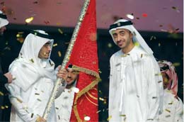 شهد الفريق أول سمو الشيخ محمد بن زايد آل نهيان ولي عهد أبوظبي نائب القائد الأعلى للقوات المسلحة، في مسرح شاطئ الراحة مساء أول من أمس، جانباً من الحلقة الأخيرة للبرنامج الجماهيري «شاعر المليون» في موسمه الثاني، كما شهد الحلقة سمو الشيخ عبد الله بن زايد آل نهيان وزير الخارجية الذي قام بتسليم «بيرق» شاعر المليون وشيك بمليون درهم إماراتي لحامل اللقب في هذا الموسم القطري خليل الشبرمي، الذي أعاد بيرق الشعر إلى قطر، بعد أن تنازل عنه حامل اللقب في الدورة الأولى القطري محمد بن فطيس المري.