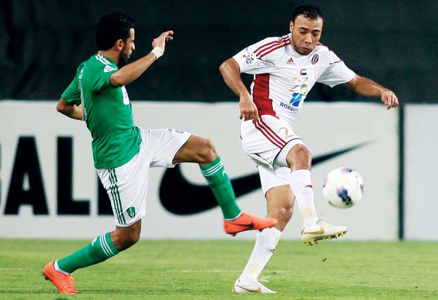 وفي الشوط الثاني ينشط الجزيرة نسبياً بعد نزول سطان برغش محل سبيت خاطر لتعرضه للإصابة، ومن أول لمسة لبرغش يمرر الكرة عرضية لدلغادو داخل منطقة جزاء الأهلي، يسجل منها الهدف الثاني للجزيرة، ويحاول الأهلي العودة للمباراة فيشرك المهاجم عماد الحوسني الذي نجح في تسجيل هدف التعادل في الدقيقة 74، وفي الدقيقة 92 تضيع من أوليفيرا فرصة تسجيل هدف الفوز لينتهي الزمن الرسمي للمباراة بالتعادل 2-2. ليتم لعب وقت إضافي على شوطين.
