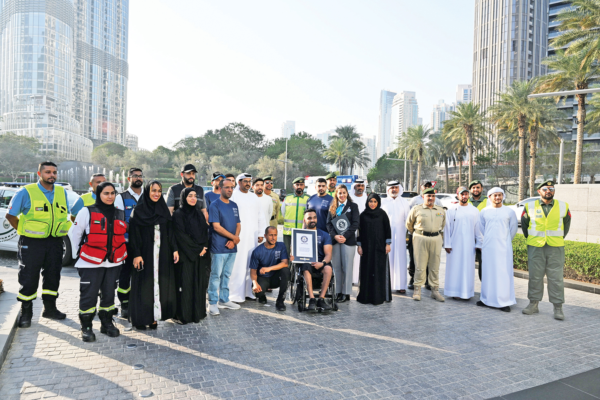 دعمت القيادة العامة لشرطة دبي، الرياضي سوجيث جوشي فارجيز من أصحاب الهمم في دخول موسوعة غينيس للأرقام القياسية، من خلال تنظيم وتأمين ومرافقة الرياضي في المسار الذي قطعه على شكل كرسي مُتحرك لمسافة 8.71 كيلومترات في إمارة دبي، مُوثقاً بخرائط جوجل.